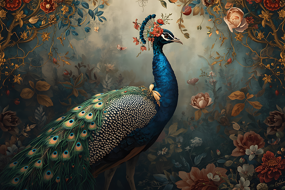 Glas schilderij elegant peacock