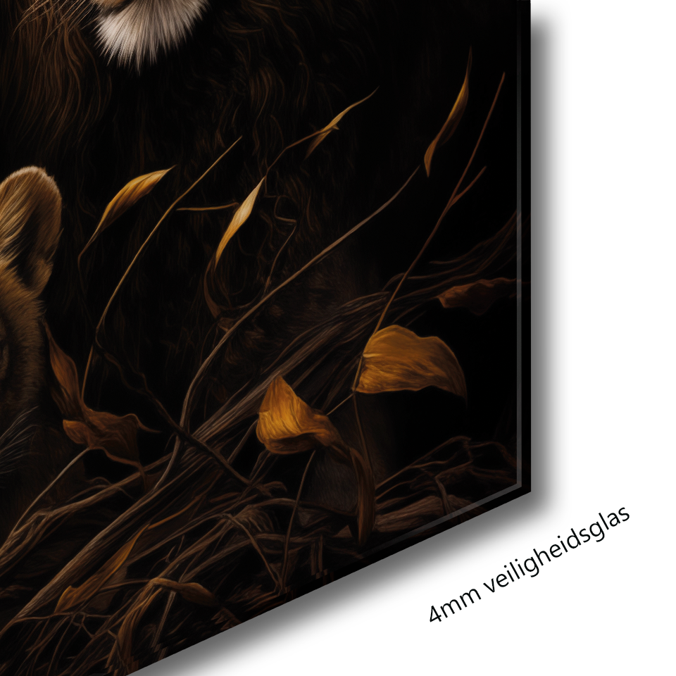Glasschilderij - Exclusive - Liggend - Leeuwenfamilie 2 Welpen