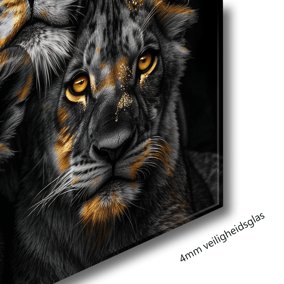 Glasschilderij - Exclusive - Liggend - Leeuwenfamilie 2 Welpjes, de Krijgers - Gouden Eeuw Serie