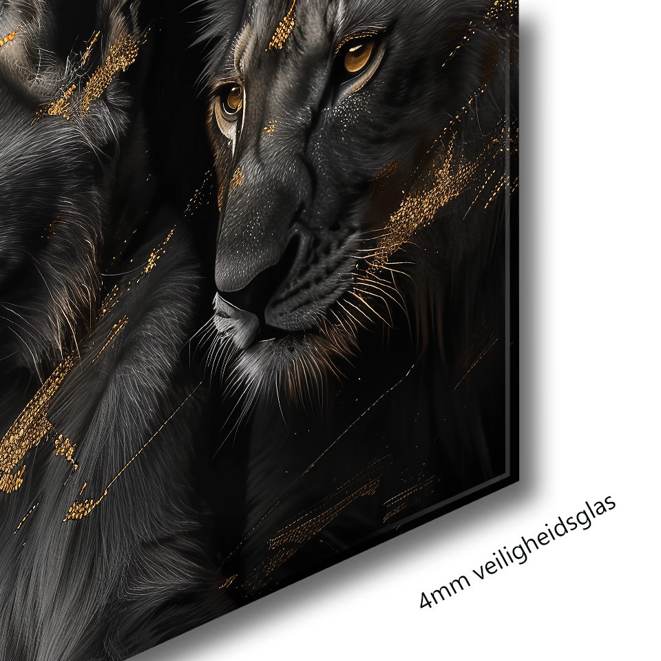 Glasschilderij - Exclusive - Liggend - Leeuwenfamilie 3 Welpjes, de Palmen - Gouden Eeuw Serie