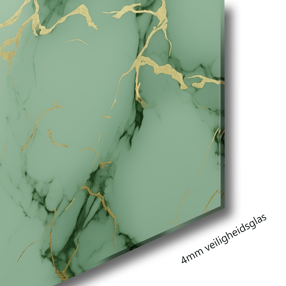 Glasschilderij - Exclusive - Liggend - Marmer Groen Goud