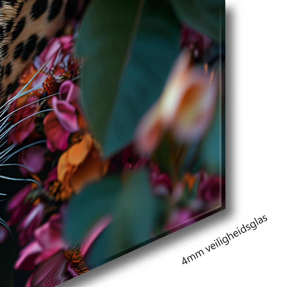 Glasschilderij - Exclusive - Liggend - Tuin van de Grote Kat Panter 150x100x0.4 cm