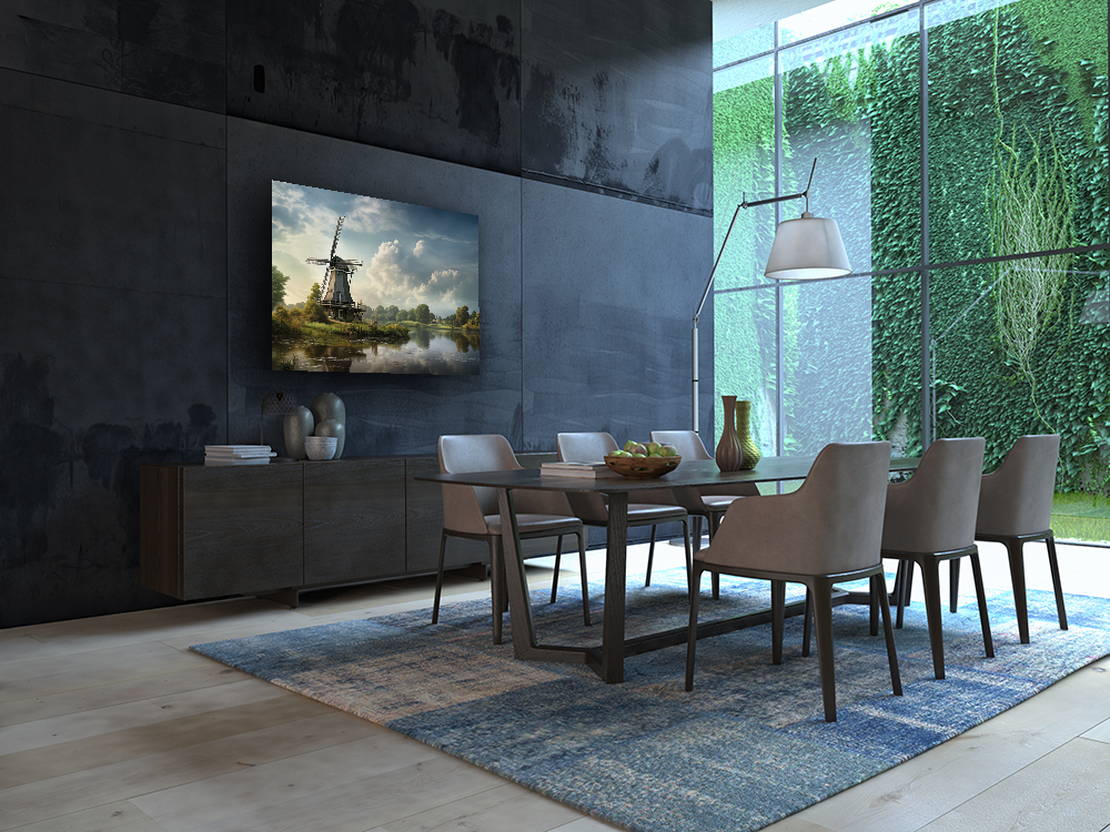 • Hang het schilderij op een stabiele en droge muur, buiten direct en langdurig zonlicht. Hoewel het glas zonlicht goed verdraagt, kan constante UV-blootstelling na verloop van tijd invloed hebben op de ophangsystemen.
