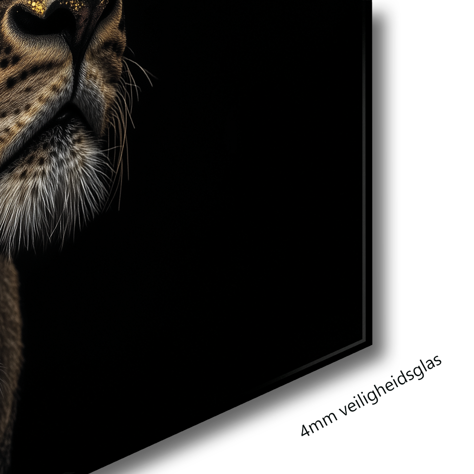 Glasschilderij - Exclusive - Liggend - Zij aan Zij Leeuwenfamilie 2 Welpen - Gouden Eeuw Serie
