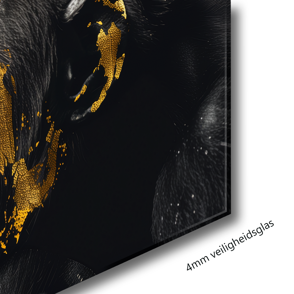 Glasschilderij - Exclusive - Staand - Apenfamilie 2 Baby Apen - Gouden Eeuw Serie