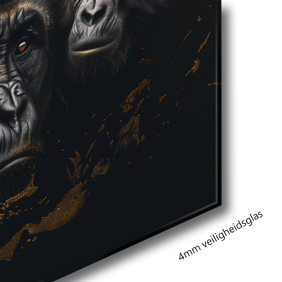 Glasschilderij - Exclusive - Staand - Gorillafamilie - Gouden Eeuw Serie