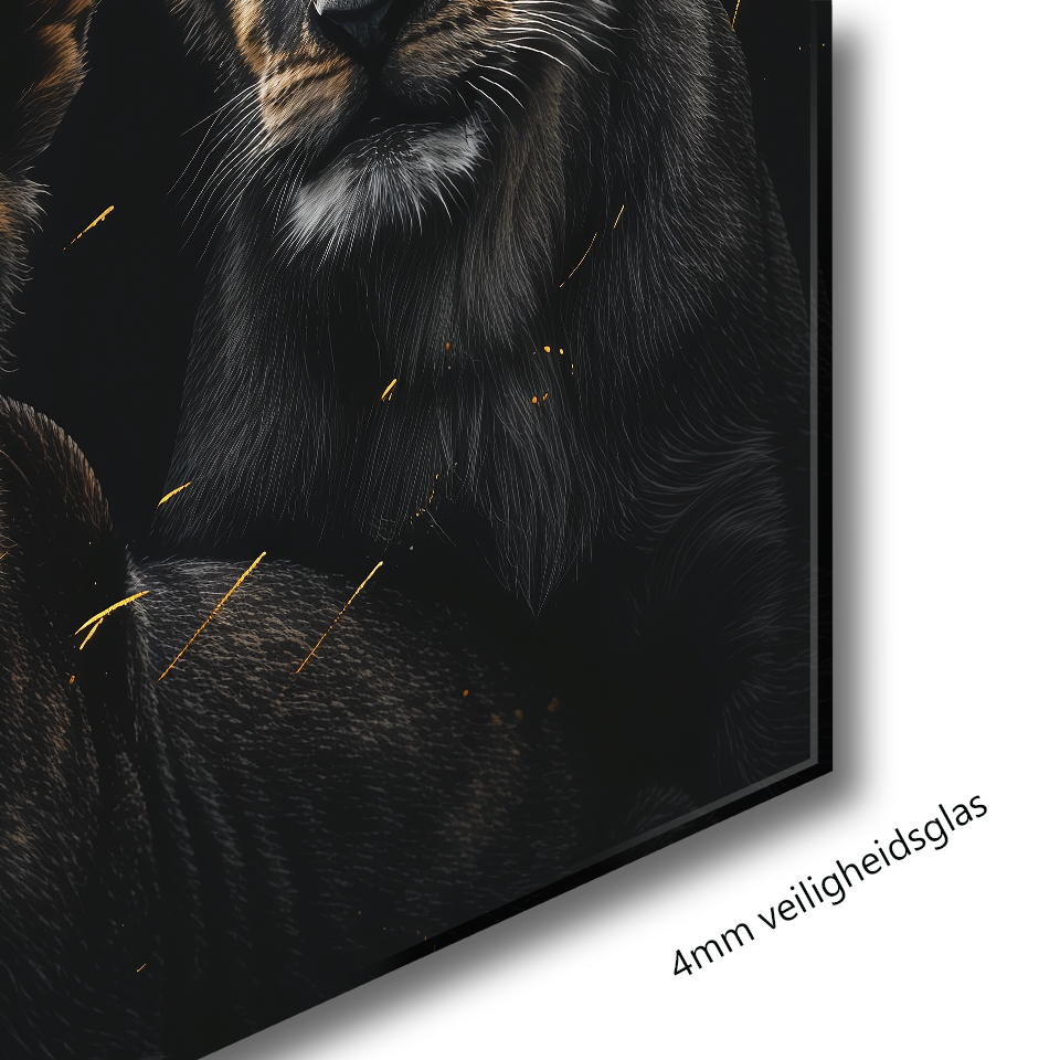 Glasschilderij - Exclusive - Staand - Leeuwenfamilie 2 Welpjes, Riley - Gouden Eeuw Serie