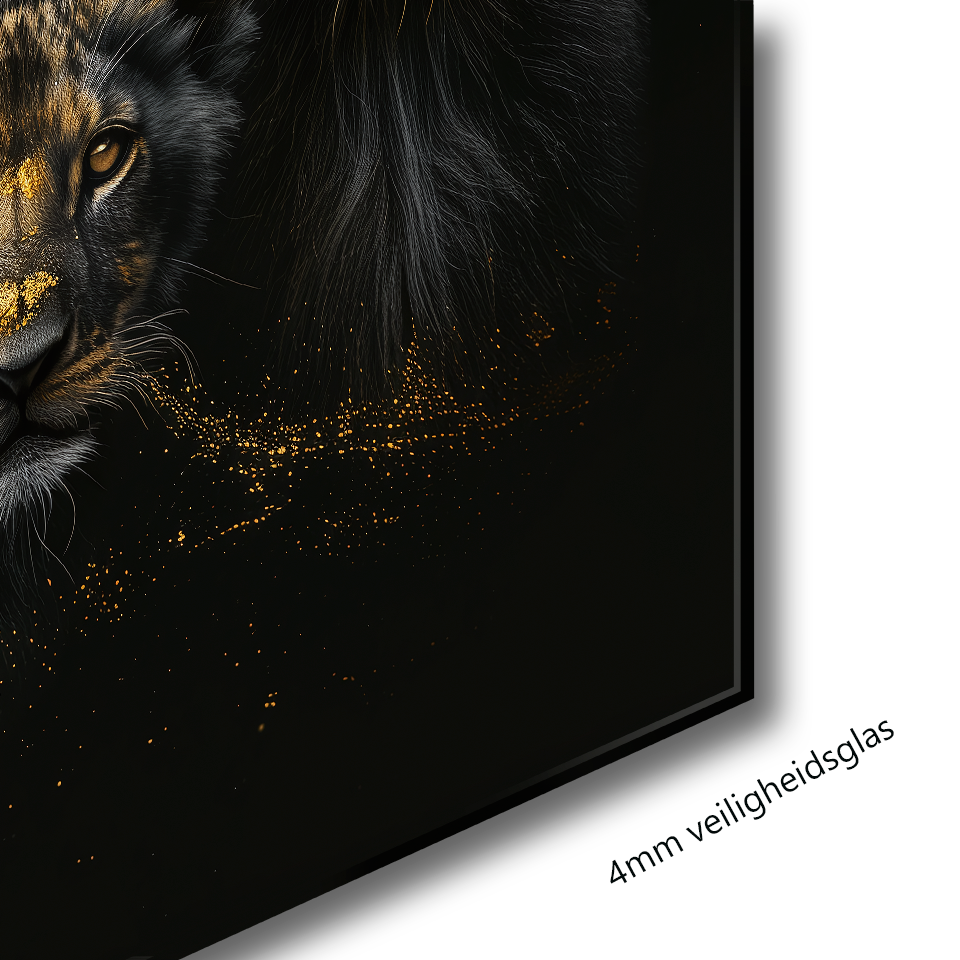 Glasschilderij - Exclusive - Staand - Leeuwenfamilie 3 Welpjes, de Oude Rovers - Gouden Eeuw Serie