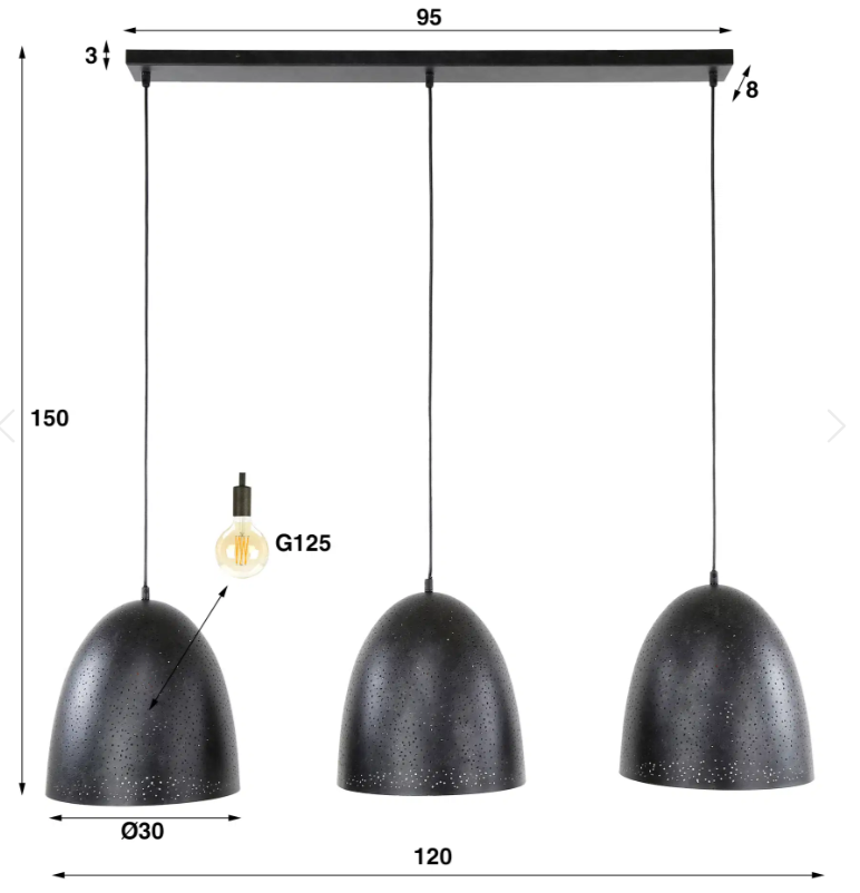 • Omschrijving: Hanglamp Kosmos 3-lichts - Charcoal